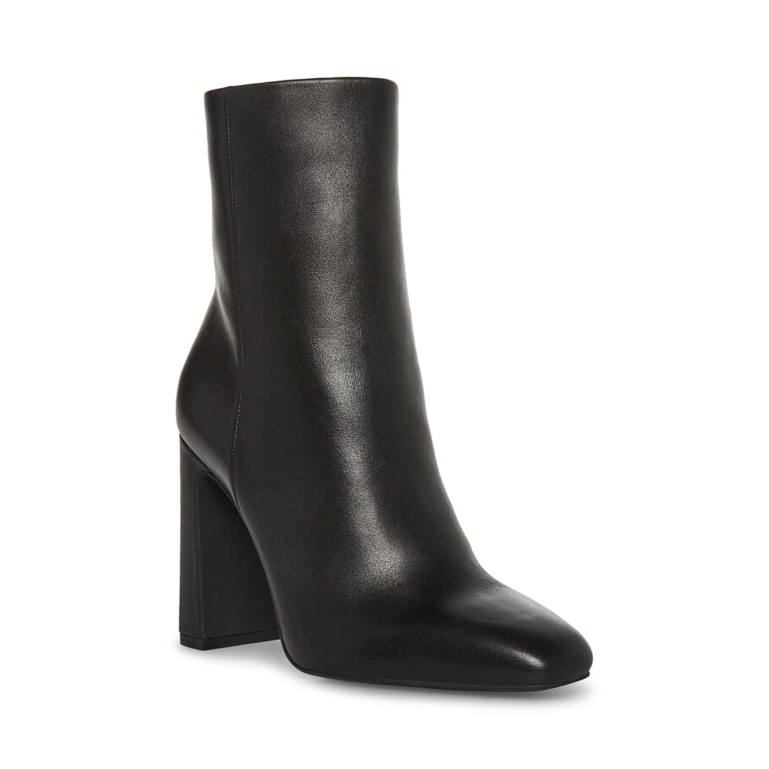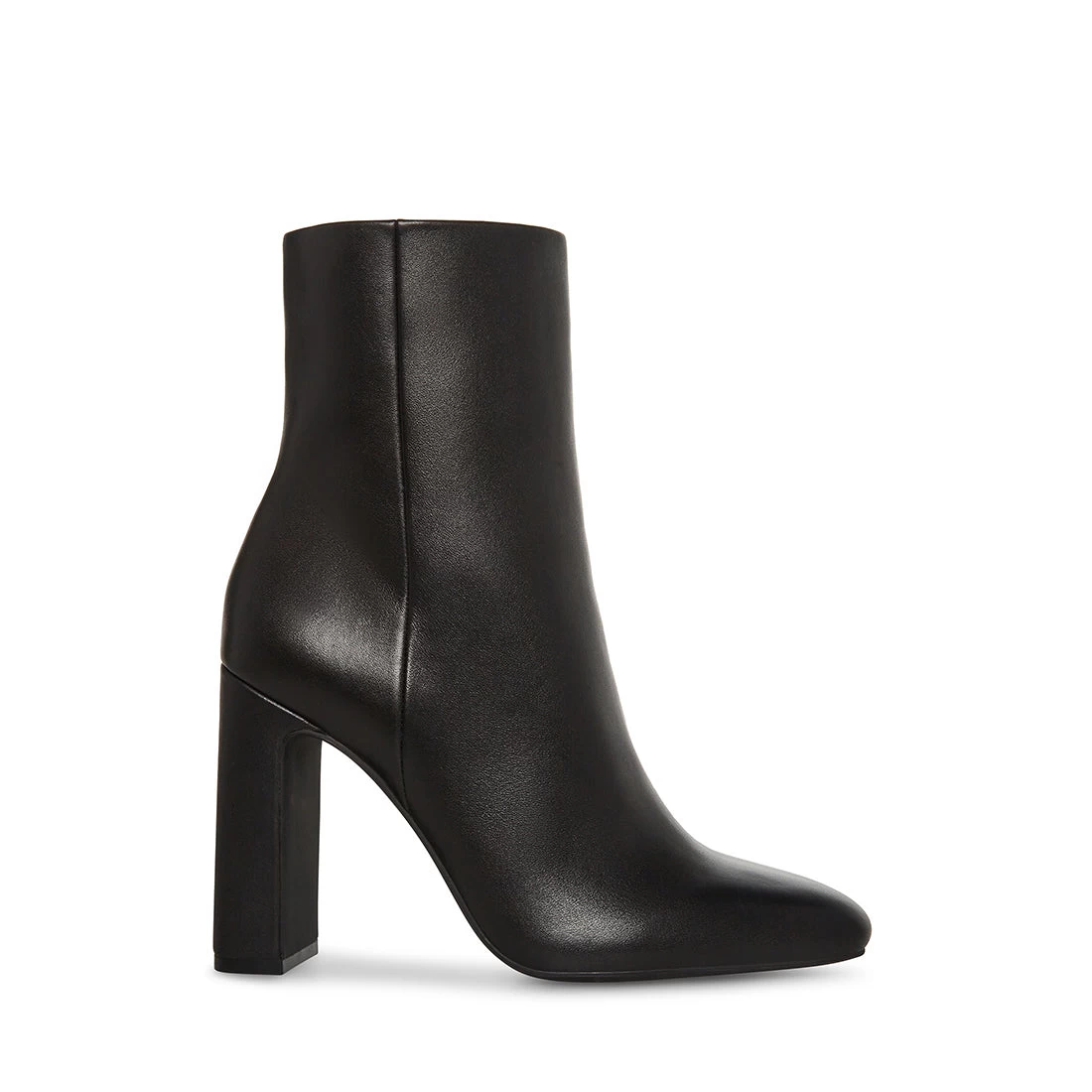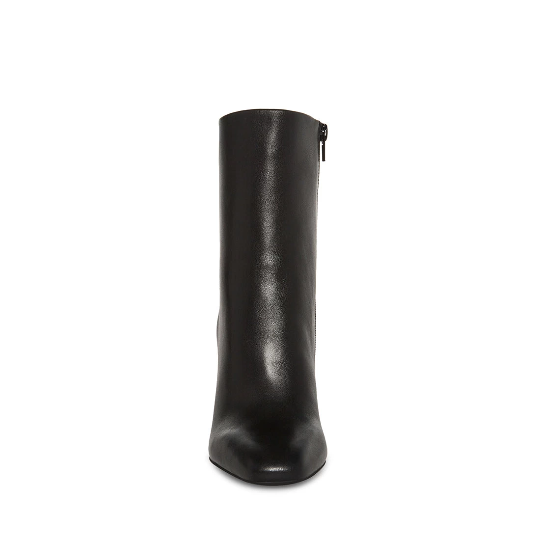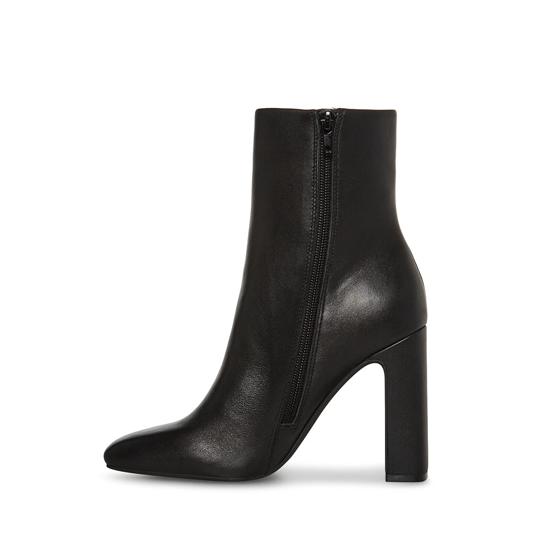 The ALLISON bootie is a sleek and smooth monochrome design with a narrow block heel and snipped toe defining the angular silhouette.
