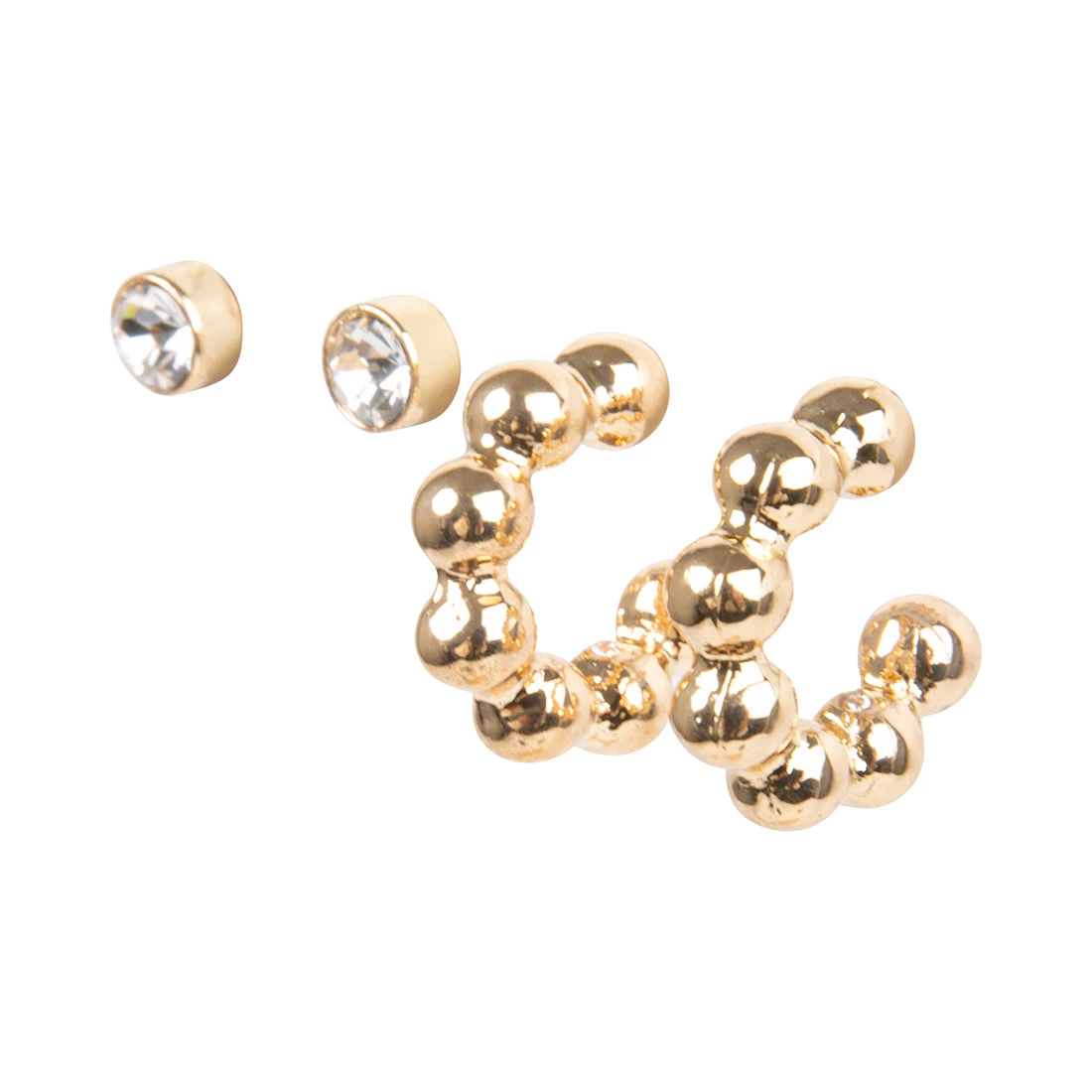 - Gold hoop and stud earrings set