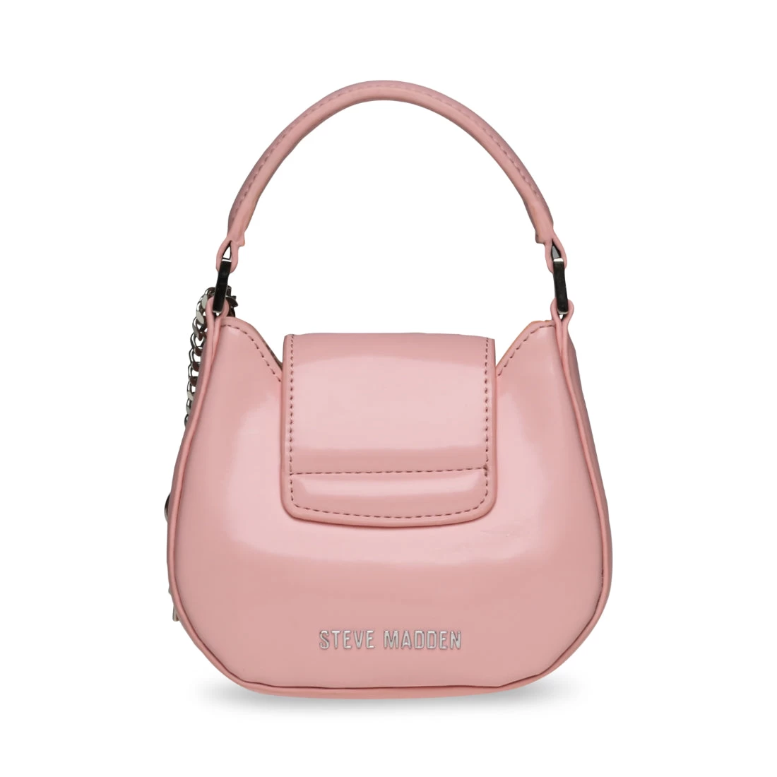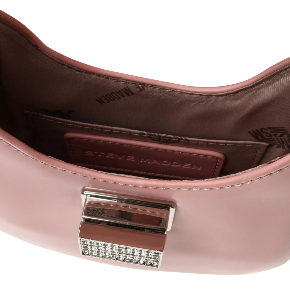 The BGLANCE bag elevates its mini saddlebag silhouette with a matching top handle and rhinestone embellished hardware.