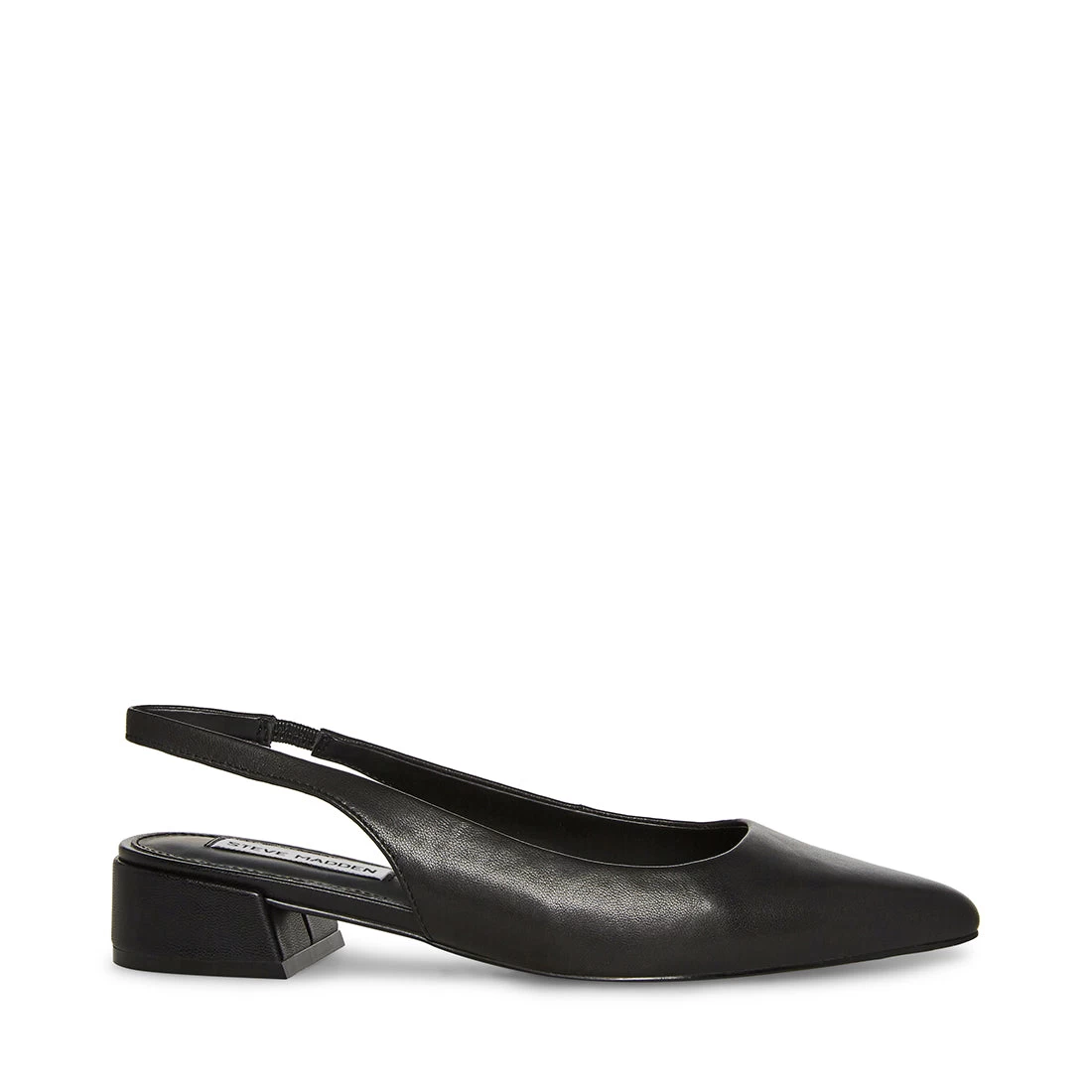 The BLAKELY slingbacks offer a low-profile silhouette with a pointed toe and a short block heel set at an angle against the outsole.