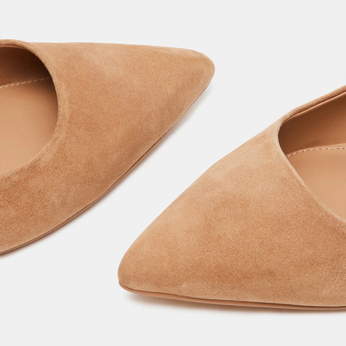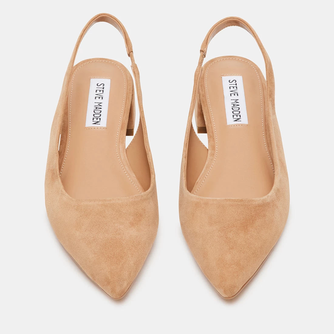 The BLAKELY slingbacks offer a low-profile silhouette with a pointed toe and a short block heel set at an angle against the outsole.