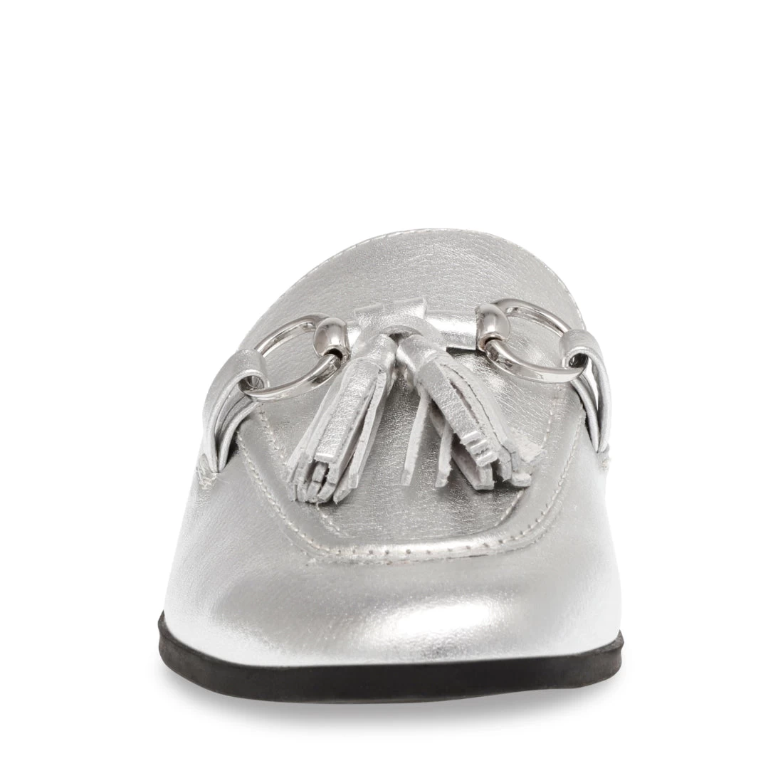 The CAYLER leather mules have an open back with a tapered loafer-inspired moc toe, finished with bit hardware and matching tassels at the top.