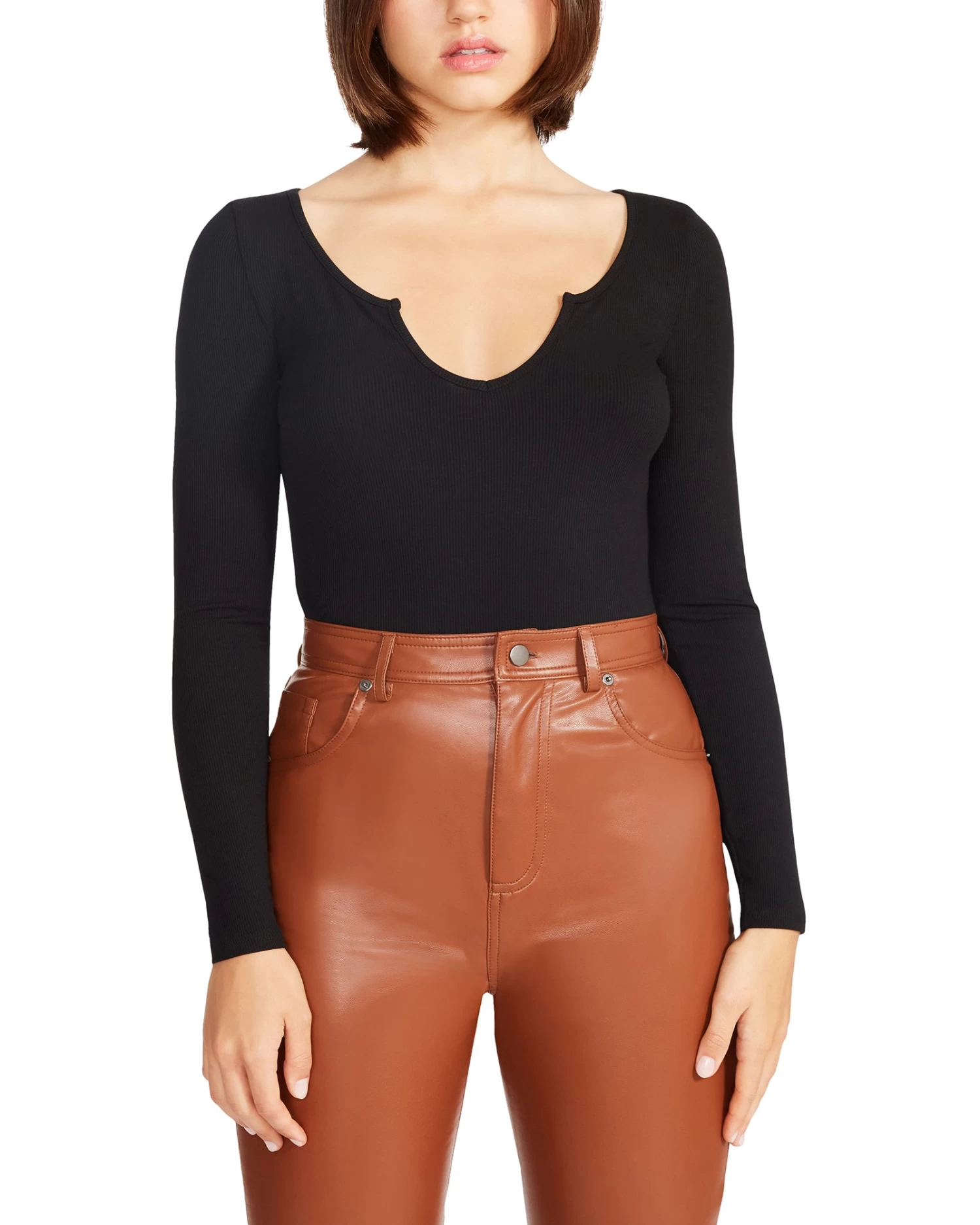 Sleek bodysuits are wardrobe essentials everyone needs! CHARLIE is a curve-hugging bodysuit with a moderately low V-neck for added allure.