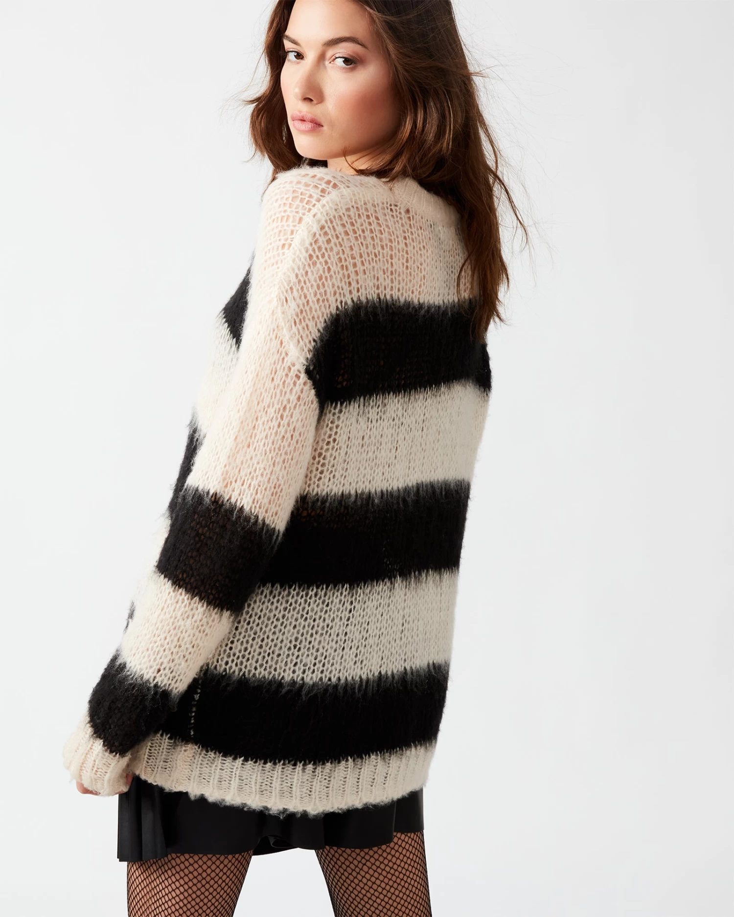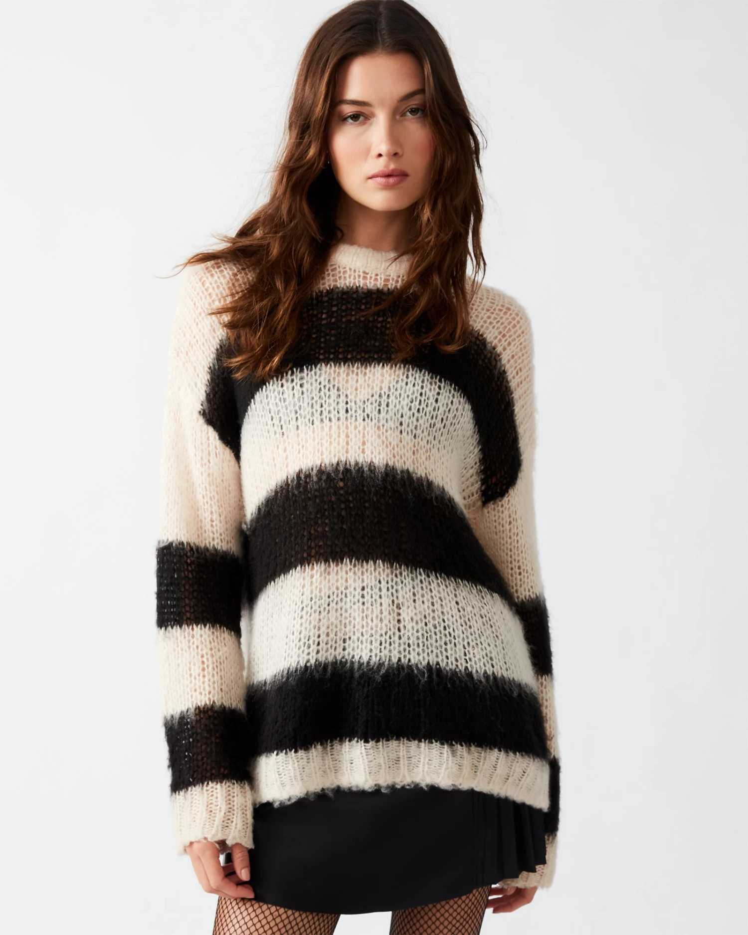 The ELSON striped sweater adds layered texture and a relaxed, oversized fit to your look without adding too much weight or bulk thanks to the sheer open knit construction.