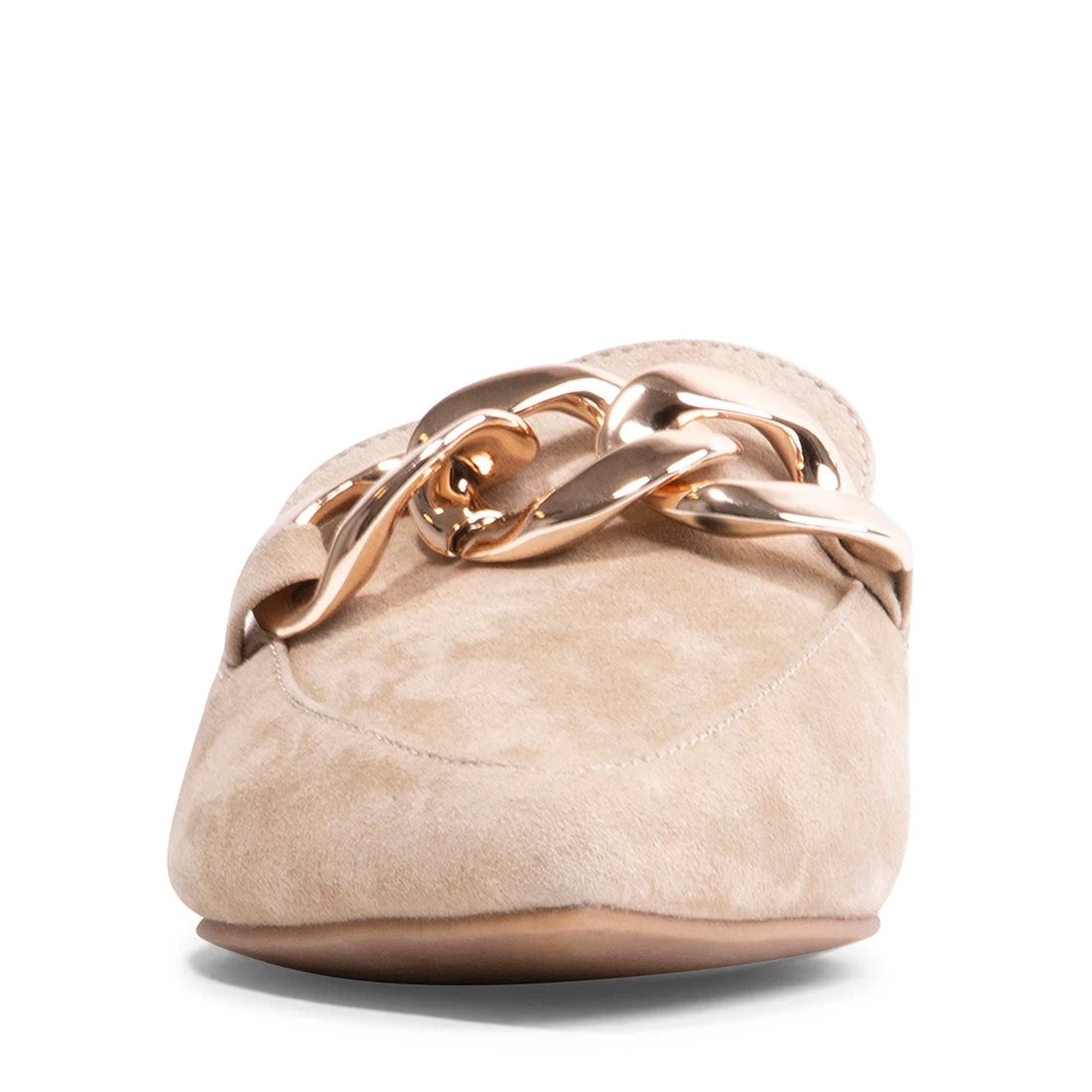Constructed from soft suede and adorned with a gleaming gold chain, FEARN adds a little bit of bling to your look.