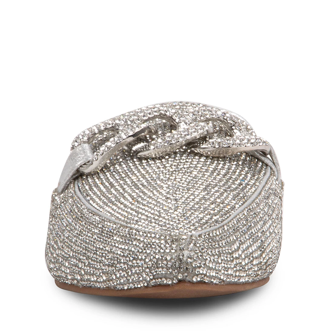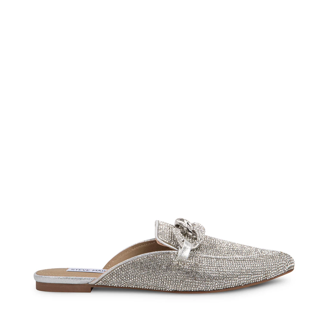 Slip into our fabulous FINN-R mules, blanketed in glittering rhinestones. Chunky chains embolden the vamp of this pointed-toe mule.
