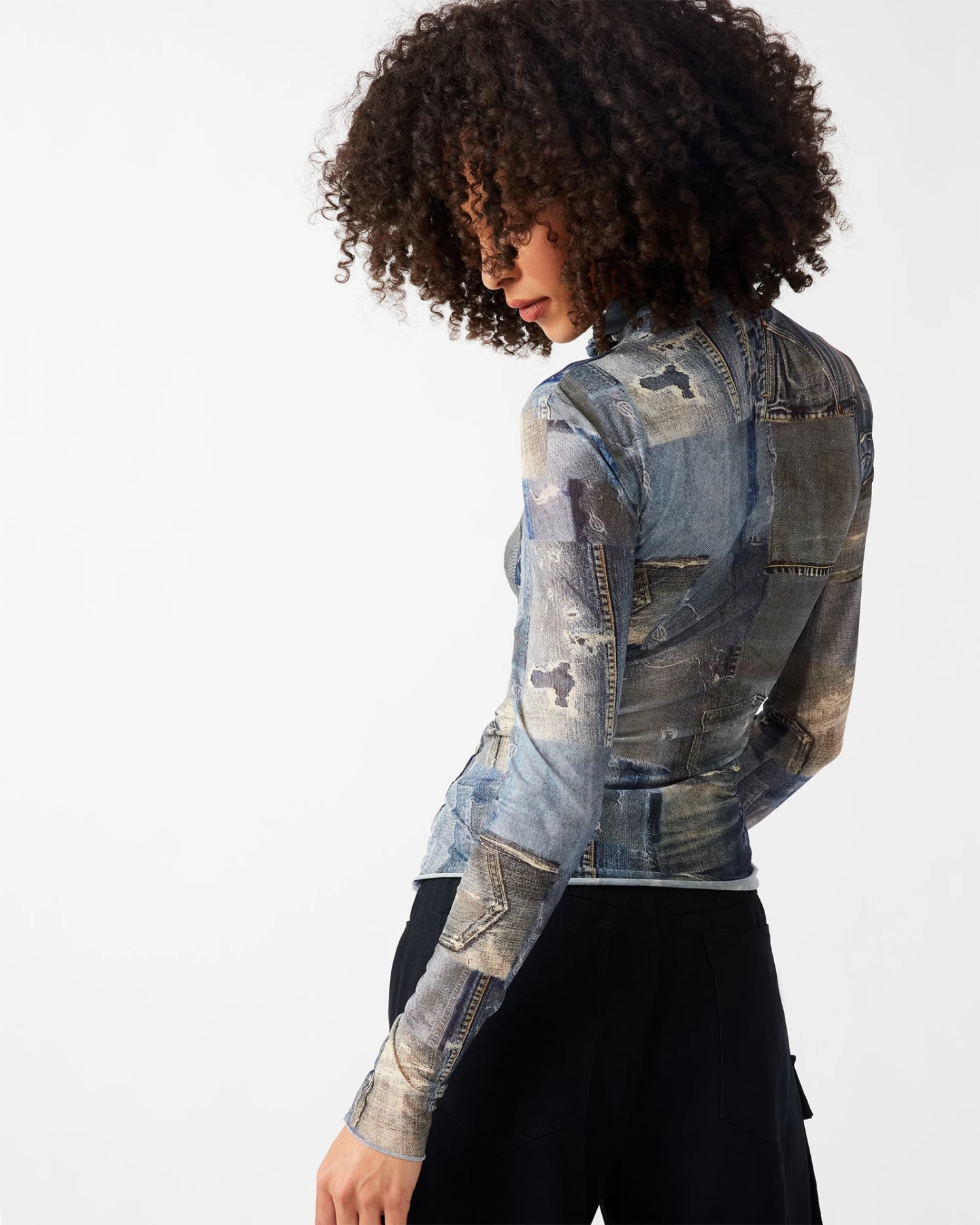 - Knit denim print top
