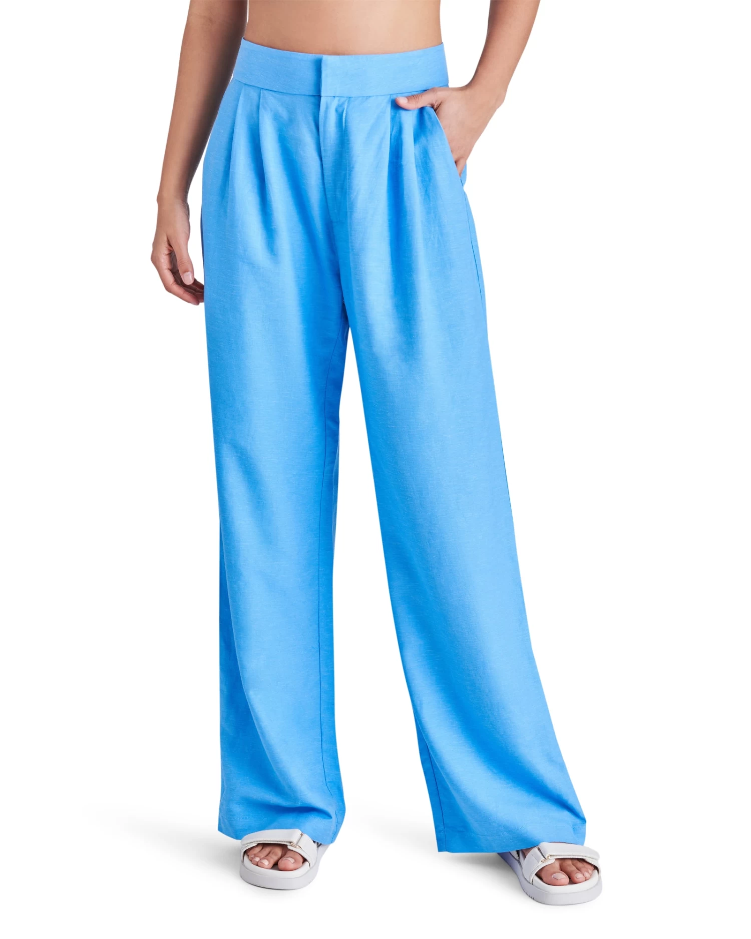 The ISABELLA pant features a high-rise waistline and pleat design.