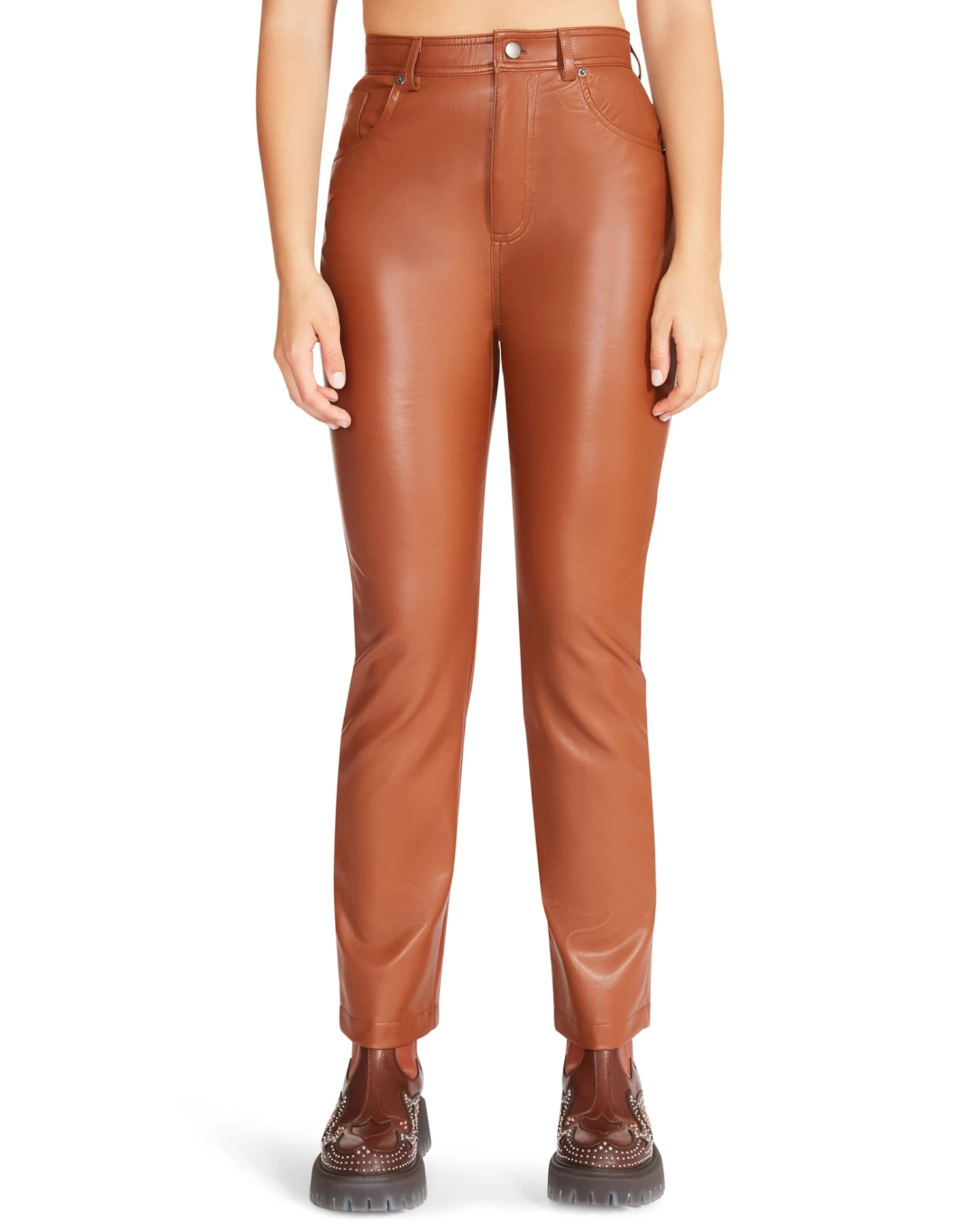 Update your wardrobe with a pair of faux leather JOSIE pants. These high-rise straight pants will offer style, without compromising comfort!