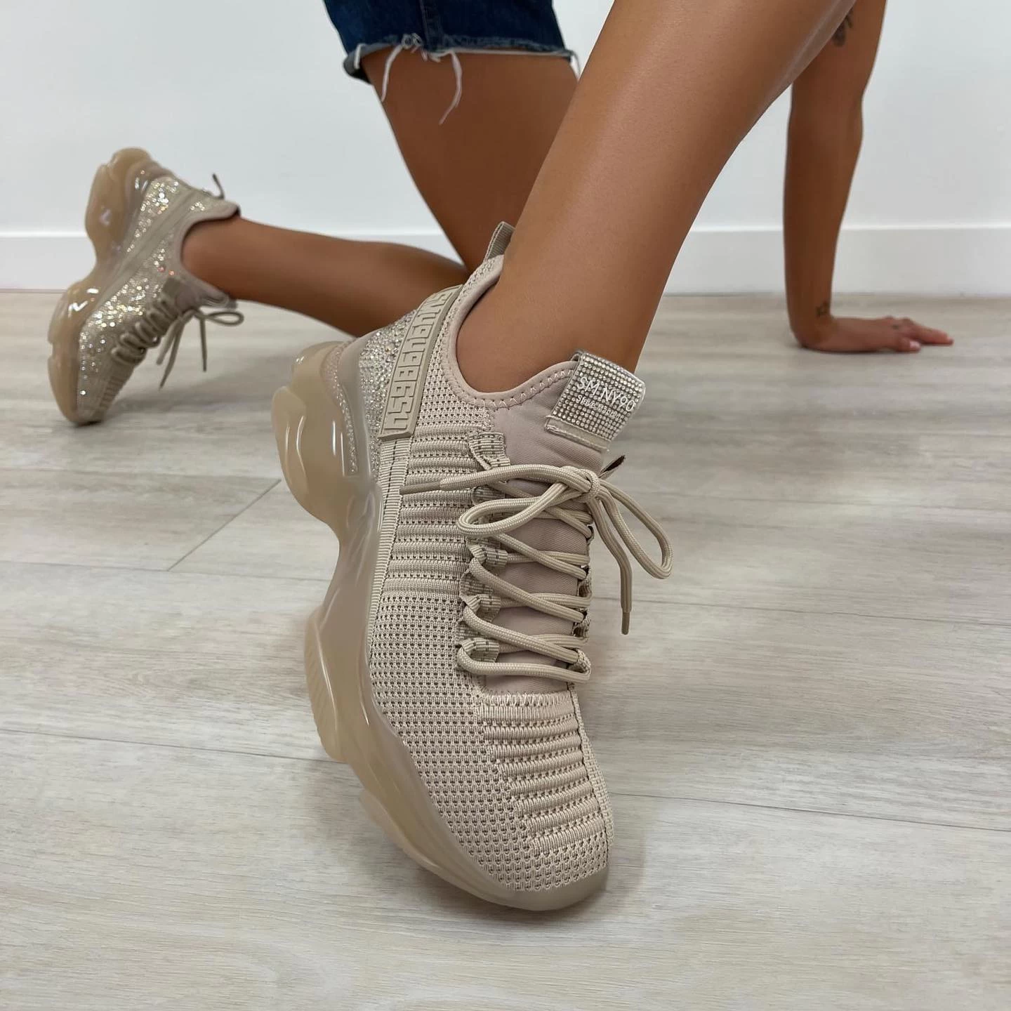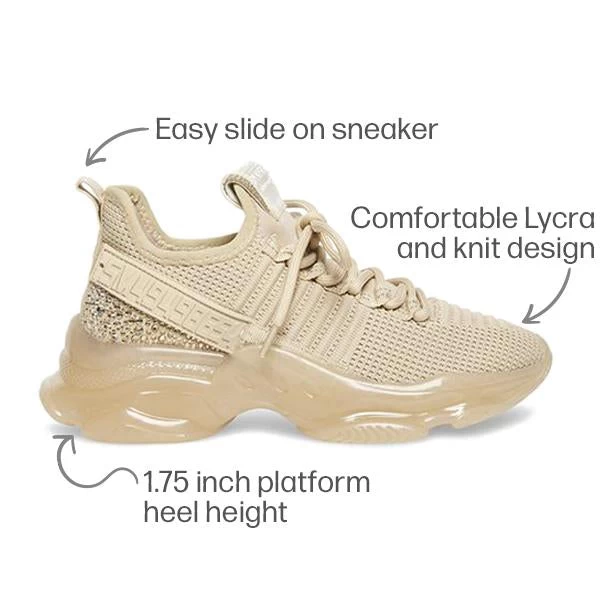 If you only rock one sneaker this season, make it MAXIMA. A super-sleek monochromatic color palette unites this kick’s defining features, which range from a texture-blocked knit upper to an artfully sculpted sole and glitzy rhinestone embellishment.